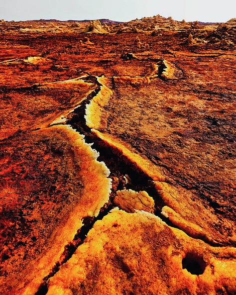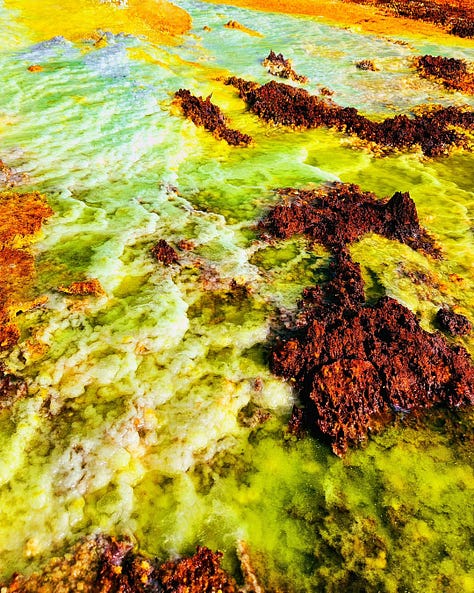 The landscape of the Danakil is like nothing I’ve ever seen—great salt lakes, neon hydrothermal pools, active volcanoes, soils so parched they crack like roof tiles. It was straight out of a sci-fi movie.